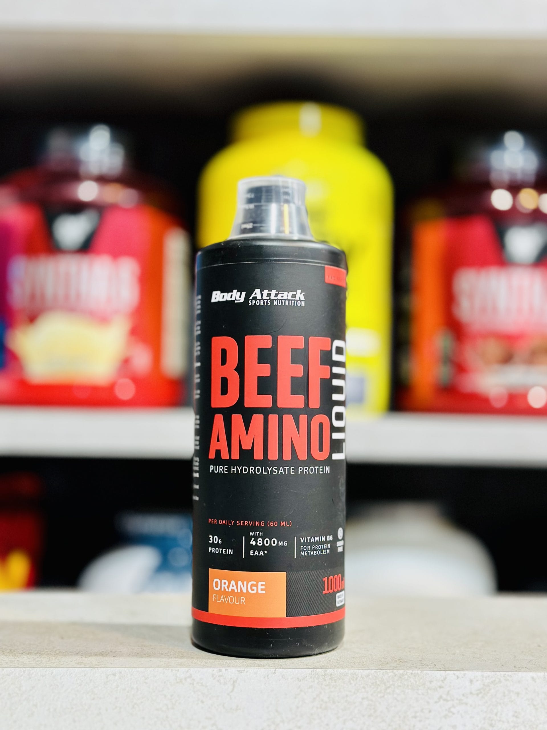 آمینو بیف مایع بادی اتک (Body Attack Beef Amino Liquid) یک مکمل غذایی مایع است که از پروتئین‌های مشتق‌شده از گوشت گاو تهیه شده و حاوی اسیدهای آمینه‌ای مانند ال-هیدروکسی‌پرولین، ال-هیدروکسی‌لیزین، ال-پرولین و ال-گلیسین می‌باشد.  این محصول به‌ویژه برای ورزشکاران و افرادی که فعالیت‌های بدنی سنگین انجام می‌دهند مناسب است، زیرا به رشد عضلات، تسریع روند ریکاوری و محافظت از مفاصل کمک می‌کند.